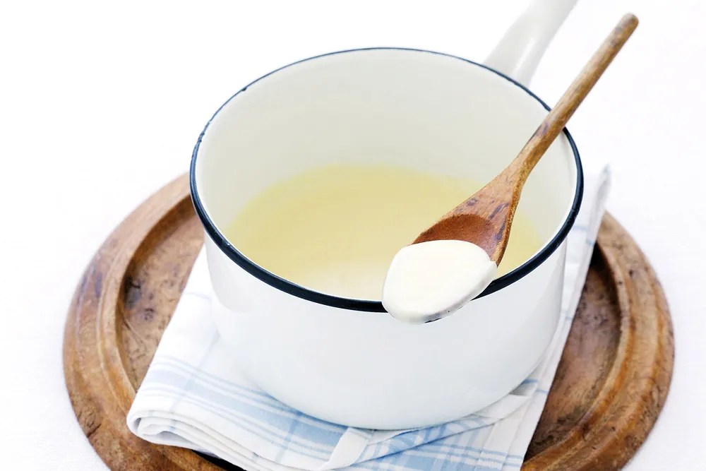 - Уже через несколько минут после приготовления соуса на его поверхности образуется плотная пенка, которая уже обратно не разойдется, поэтому ее придется снять непосредственно перед использованием соуса. Поэтому соус желательно добавлять в блюда сразу после приготовления или же накрыть его сверху пищевой пленкой так, чтобы она плотно прилегала к поверхности и препятствовала возникновению молочной пенки.