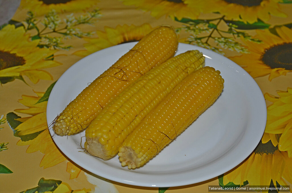Ее носили на пляжах, продавали на базарах, готовили дома в громадных кастрюлях. Варили кукурузу долго – минут сорок, потому, что сорт был такой. Это сейчас уже понятно, что ели мы кормовую кукурузу, а тогда просто было за счастье – набегавшись втоптать желтый кочанчик, намазанный маслом и обильно посоленный крупной каменной солью. Как для человека хорошо, когда он не может сравнивать. Будь то – как люди в другой стране, например на западе, живут, или какая должна быть правильная кукуруза. Не знаешь и живешь спокойно, даже не понимая, как правильно, наивно считая, что правильно это то, как здесь и сейчас (это я не пропаганду развожу, а просто вспоминаю советское детство). Сейчас доступна нормальная, не кормовая кукуруза, в простонародье называемая “маис”. Совершенно не понятно почему, может, чтобы подчеркнуть заморскость происхождения этого сорта, и чтобы не попутали с тем, что было раньше. Варится она 7-8 минут и на вкус, если свежая, прям то, что говорят – молочная кукуруза.