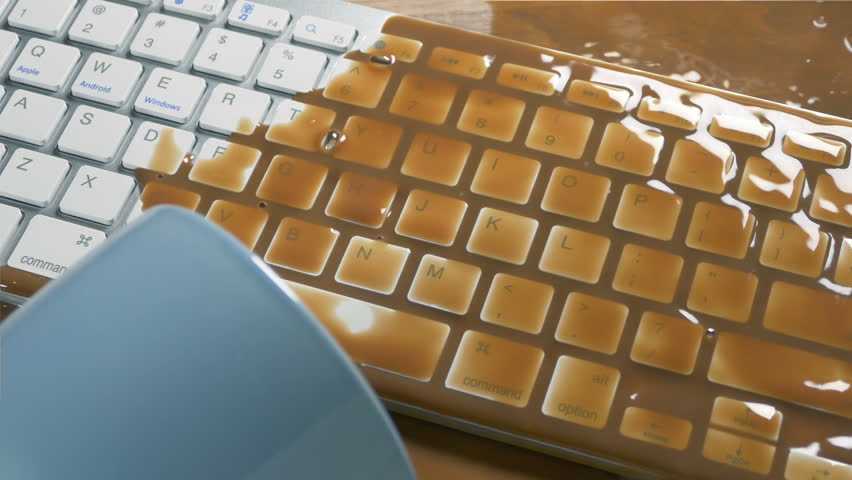 Если вы часто работаете за ноутбуком, не исключено, что у вас есть привычка пить по ходу работы какие-то напитки. Мастера салонов по ремонту цифровой техники «МТ Сервис» в этом случае предупреждают: питье чая или кофе грозит тем, что вы можете случайно пролить жидкость на клавиатуру ноутбука. Это особенно опасно для работающего девайса, поскольку под клавиатурой находится материнская плата. Некоторые производители устанавливают пленку под клавиатуру, способную выдержать до 200 мл жидкости, другие покрывают плату специальными лаками, однако все эти меры не могут гарантировать стопроцентную защиту.