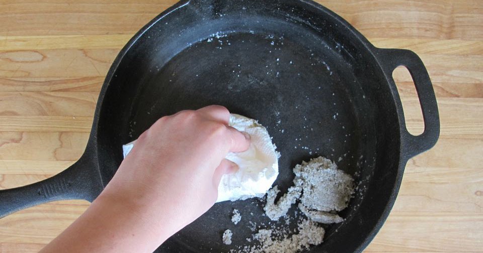 Затем добавляется ложка соли (можно каплю моющего средства для посуды) и абразивной стороной губки все вычищается. Изделие споласкивается и насухо вытирается.