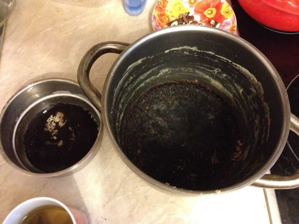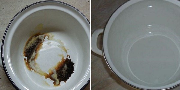 Затем кастрюля вынимается и остатки грязи, жира и нагара легко, без особых усилий, дочищаются мягкой губкой.