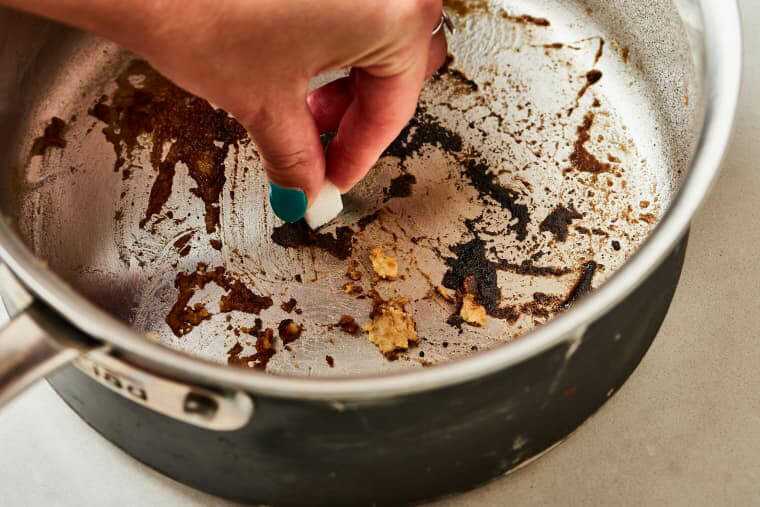 Сделайте густую пасту из пищевой соды и воды и нанесите ее на обожженное место. Оставьте пасту на несколько минут, затем сотрите ее влажной губкой или тканью. Пригоревшая еда оторвется вместе с пищевой содой.