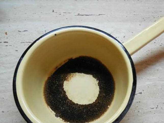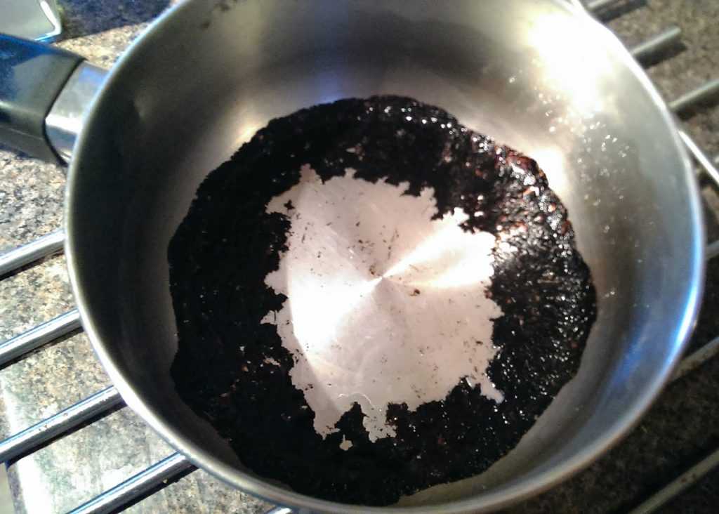 При помешивании и наклоне кастрюли в разные стороны будет видна очистившаяся поверхность, раствор при этом станет черным.