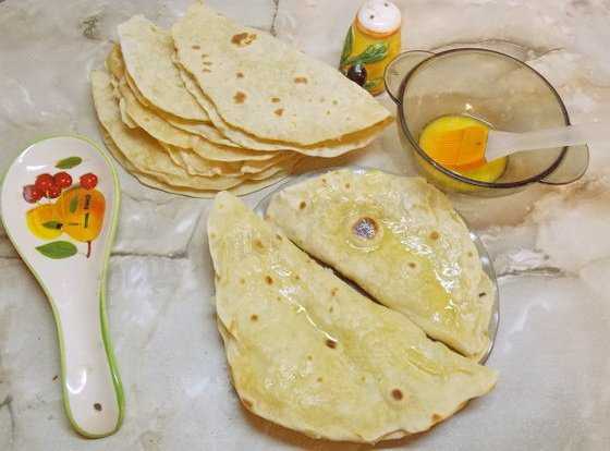 Чтобы лепешка не поломалась на изгибе, начиняйте ее в горячем виде теплой начинкой.