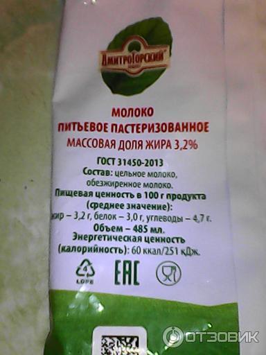 - Химический состав «Молоко 2,5% [Дмитрогорский Продукт]»