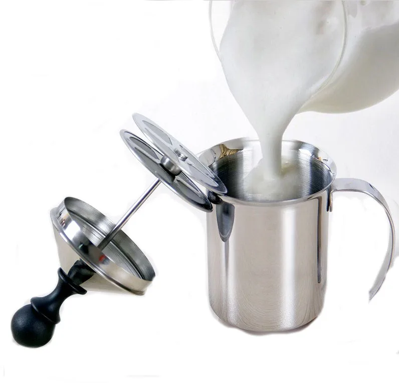 В магазинах есть такое оборудование, которое работает с помощью батареек. Для этот нам нужно иметь только небольшую посудину, куда нальете и вспеньте молоко.Обратите внимание, что ручной капучинатор не взбивает холодное молоко и не подогревает его.